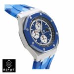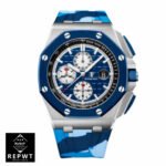 Dive into the world of luxury with the AP Offshore Marine Rubber Replica from Audemars Piguet’s celebrated Royal Oak Offshore collection. Powered by the precise automatic AP 3126 / 3840 caliber with an impressive 60-hour power reserve. this watch embodies reliability. The 44mm 904L stainless steel case in steel blue is complemented by a blue bezel and dial. protected by sapphire crystal. The dial features ceramic stick hour-markers and 904L stainless steel hands. all encapsulated within an attractive camouflage plain blue rubber bracelet with adjustable links.