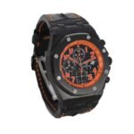 The Audemars Piguet Royal Oak Offshore Replica is a 1:1 super clone Swiss mechanism watch. It features a 904L stainless steel case and bezel. both in black. and a sapphire crystal. The movement is an Automatic AP 2326 / 2840 with a power reserve of 60 hours and a precision of (-3/+3 sec/day) within COSC certification limits. The dial is black with Arabic numerals and 904L stainless steel stick hands. The bracelet is genuine leather stitched Hornback Alligator Leather in black and orange. with an adjustable 904L stainless steel deployant clasp.