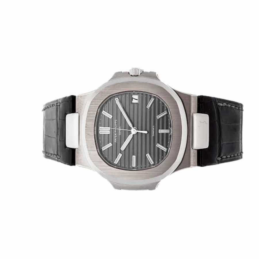 The Patek Philippe Nautilus 5711G-001 Replica is a high quality watch that is sure to turn heads. It features a 904L stainless steel case and bezel. with a sapphire glass crystal and a 40.00 mm size and 8.3 mm thickness. The movement is an automatic caliber 324 S C with a 60-hour power reserve and precision within COSC certification limits. The dial is grey with stick indices and Patek Philippe hour-markers. and the hands are 904 stainless steel stick. The bracelet is black leather with adjustable links and a 904L stainless steel tang clasp.