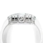 At the core of the RM 35-01 White is its skeletonized movement. housed within a 44.5mm tonneau-shaped case made from Carbon TPT® and White Quartz TPT®. This advanced material not only enhances the watch’s visual appeal but also provides exceptional strength and shock resistance. making it ideal for extreme conditions. The vibrant white Quartz TPT® bezel and caseback further highlight its sporty and futuristic design.