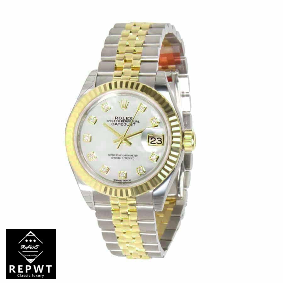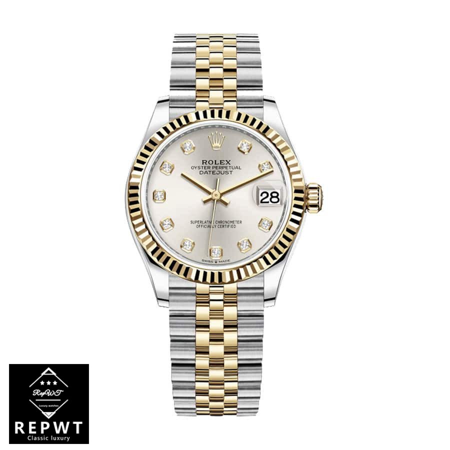 This Rolex Datejust 279173 Steel & Yellow Gold Automatic Silver With Diamond Dial Replica is a high quality watch. It features a 904L stainless steel case with a yellow gold bezel and a sapphire crystal. The bracelet is made of 904L stainless steel with adjustable links and a fold clasp in yellow gold and steel. The dial is silver with gem-set indices and 904L stainless steel hour markers and hands.