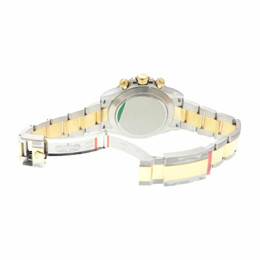The Rolex Daytona Two Tone White Dial 116523 Oyster Replica is a stunning watch. It features a 904L stainless steel case with a yellow gold and steel color. a sapphire crystal. and a 40.00 mm size and 12.30mm thickness. The bracelet is also made of 904L stainless steel with an adjustable link and a fold clasp in yellow gold and steel. The dial is white with gem and dot indices. 904L stainless steel hour markers and stick hands.